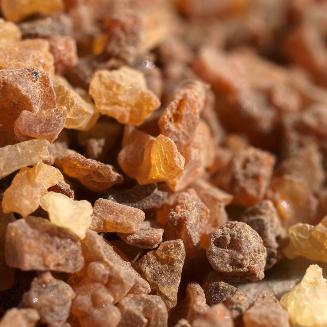Desde la antigüedad, la mirra ha sido venerada en muchas civilizaciones. Fue utilizada por los antiguos egipcios en rituales de embalsamamiento, incienso sagrado, perfumes, ungüentos y remedios tradicionales. Hallazgos arqueológicos han revelado resina de mirra en vasijas funerarias y tumbas, destacando su larga asociación con la preservación, purificación y práctica espiritual. La mirra también fue ofrecida como un regalo en antiguas tradiciones religiosas y ha permanecido listada en farmacopeas históricas durante siglos.