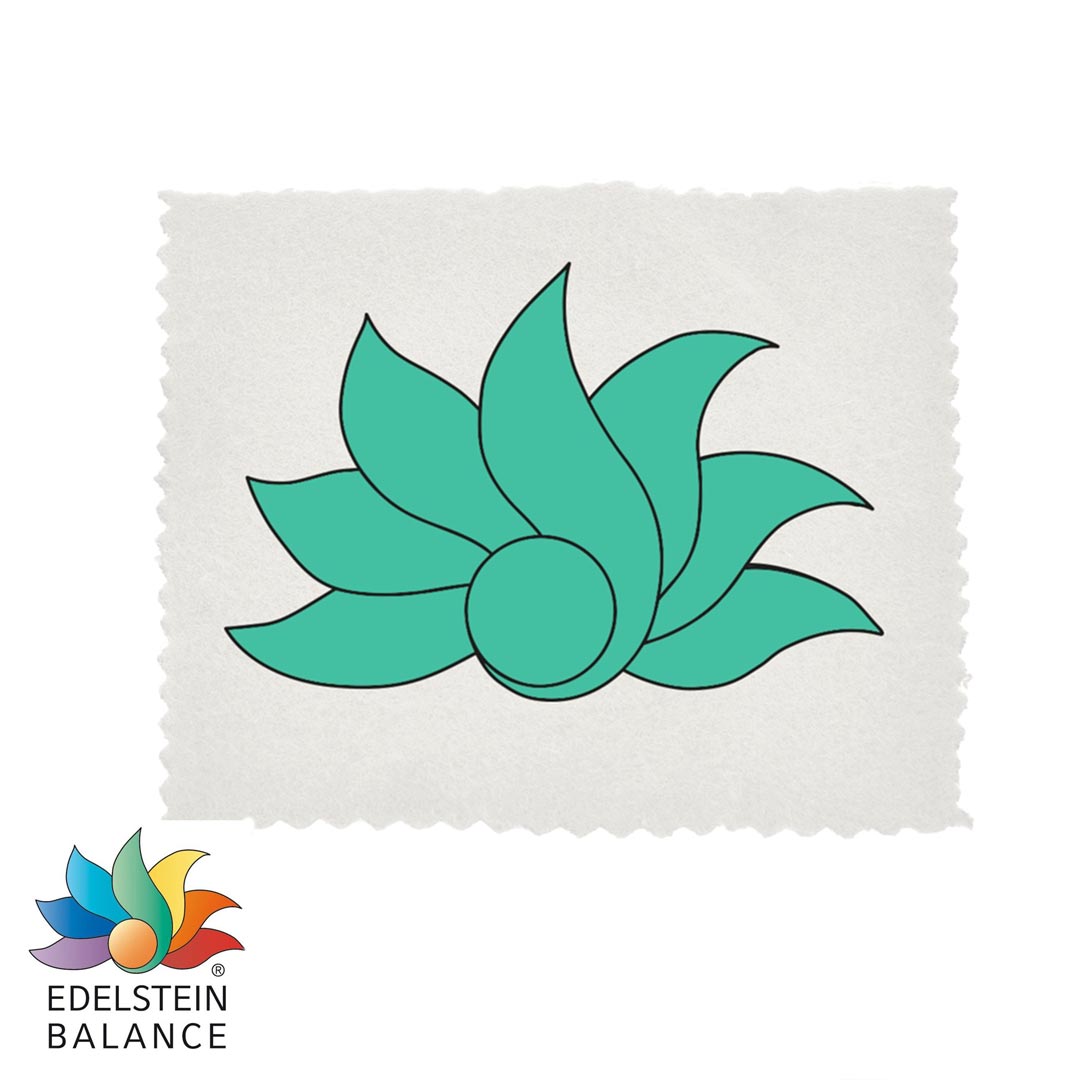 Cada caja incluye un paño de tela con el logo de Edelstein Balance® en el calmante color verde del tema Anti-Stress. Utilice el paño para energizar sus piedras secas o como base para su jarra/jarra de agua de piedras preciosas.
