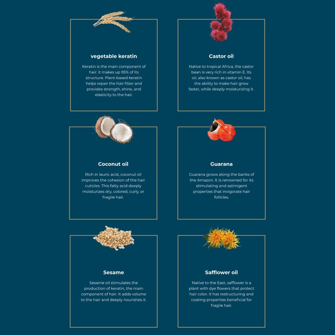 Aqua, Coco-Glucoside, Decyl Glucoside, Cocamidopropyl Betaine, Glycerin, Ácido Cítrico, Glyceryl Oleate, Cocos Nucifera Oil*, Ricinus Communis Seed Oil*, Paullinia Cupana Seed Extract*, Aloe Barbadensis Leaf Powder*, Proteína de Trigo Hidrolizada, Gliceridos Vegetales Hidrogenados Citrato, Tocoferol, Goma Xantana, Parfum (Fragancia Natural), Benzoato de Sodio, Levulinato de Sodio, Guar Hydroxypropyltrimonium Chloride, Sorbato de Potasio, Anisato de Sodio.